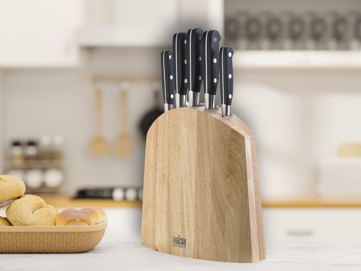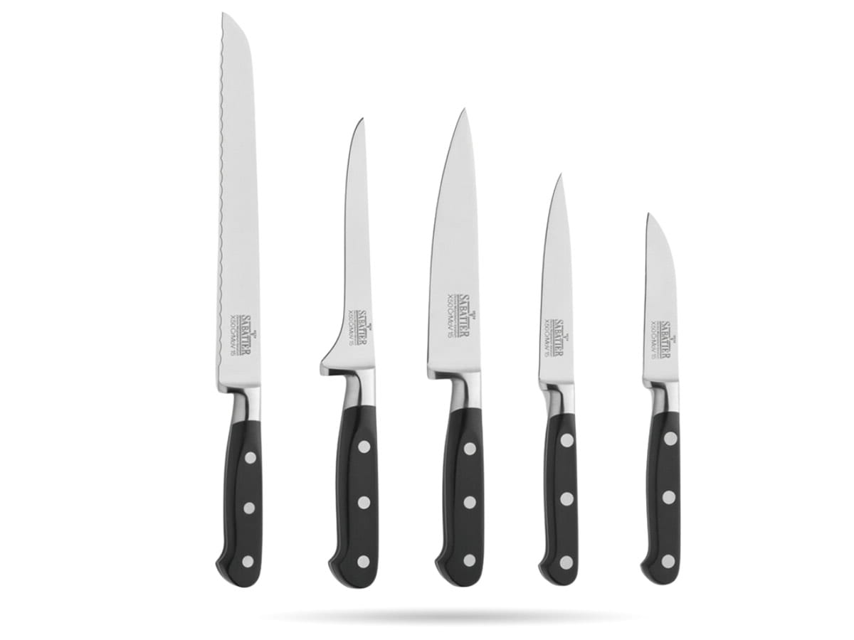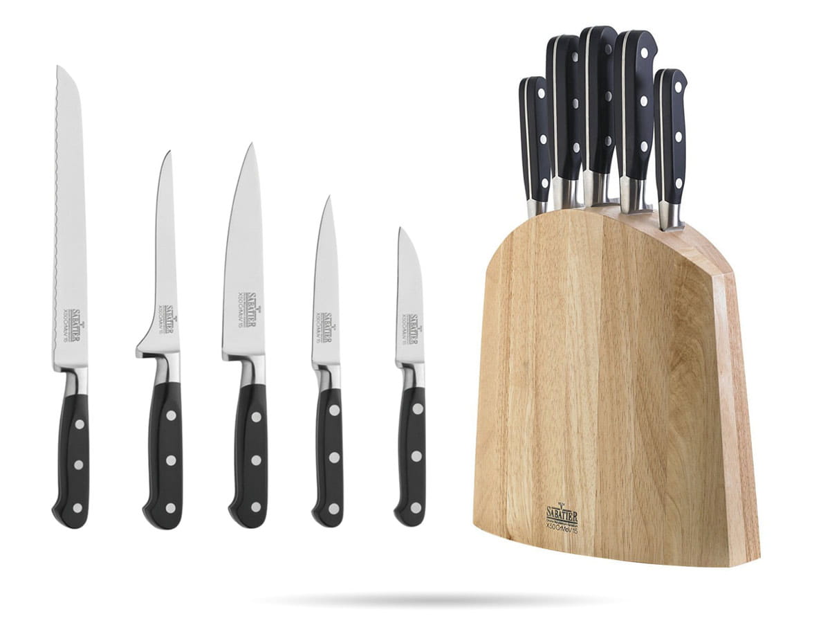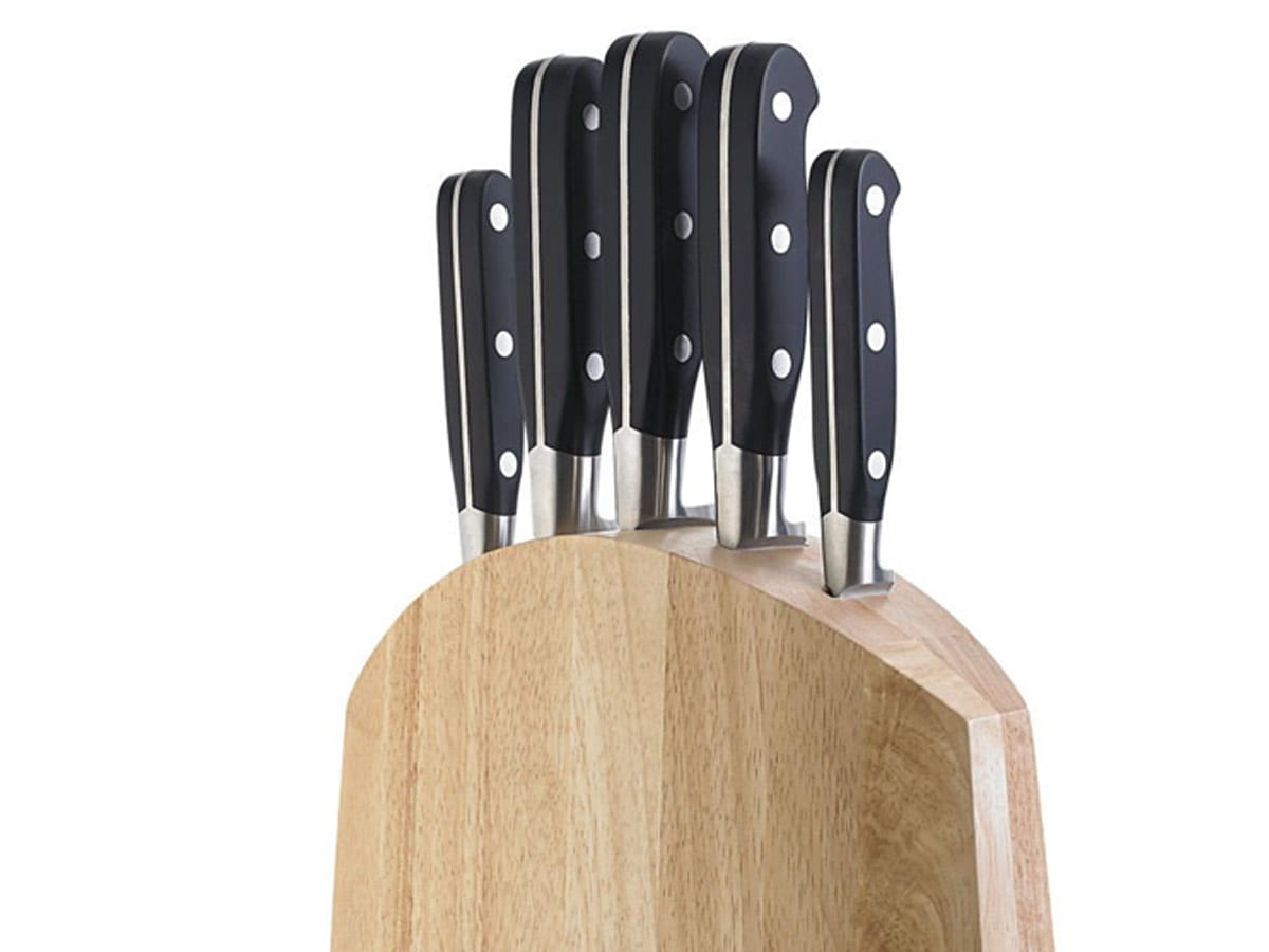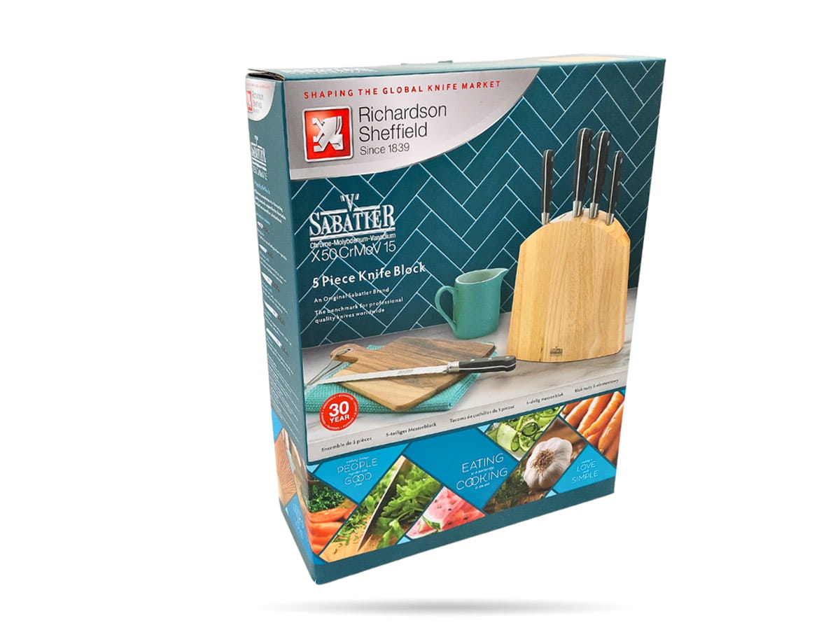 Zestaw noży w bloku Richardson Sheffield. V Sabatier to noże dla profesjonalistów - niezawodne, wyjątkowo ostre, solidne i trwałe. Ergonomiczne rękojeści pozwalają na precyzyjną pracę. Noże osadzone w drewnianym bloku. Doskonałe noże do gastronomii i do domu.